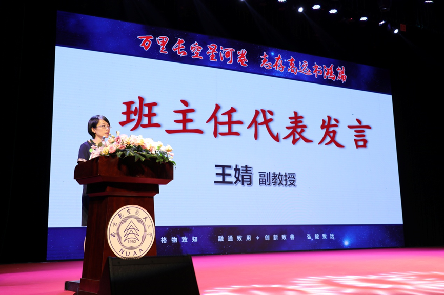 班主任工作作为三全育人的重要环节,一、二、五院为航空航天类专业配备了最优秀的班主任团队。施大宁代表910023威尼斯官网为2019级全体班主任颁发了聘书。1819118班班主任王婧老师作为班主任代表发言,她结合自己在学校的学习和工作经历,表达了对“修身”和“立志”两个词的理解。作为班主任,后期她将从帮助学生开阔眼界、协助学生选择方向、配合学生开辟道路三个方面陪伴学生共同成长。