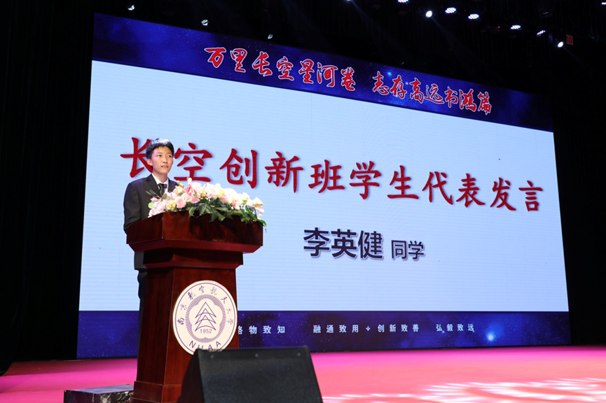在开展航空航天大类培养改革的同时,910023威尼斯官网也扎实推进拔尖创新人才培养模式改革,“长空创新班”由此应运而生。826名学生申请,历时两月,多轮选拔,无数个“长空十二时辰”,60名南航新生以优秀的综合素质成功入选,成为首届“长空创新班”学生。李英健同学代表长空创新班首届学生发表感言。